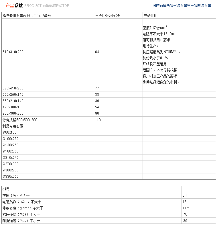 以上為國產石墨參數表,僅供參考: